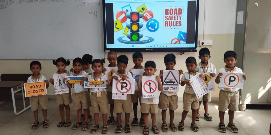 KG 1 students participated in a road safety activity, learning basic traffic rules and safety signs through interactive and engaging classroom activities that promote awareness from an early age.