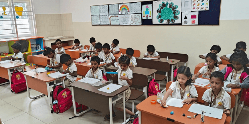 The Kindergarten students of our Coimbatore Branch enthusiastically took part in the Art from Waste activity. Using pista shells, children created beautiful fish crafts and colorful flower art with pencil shavings. This activity encouraged creativity while teaching the value of reusing everyday materials. It was a joyful learning experience filled with imagination, fun, and eco-friendly awareness.